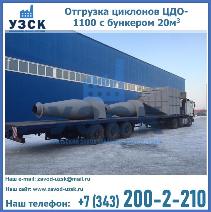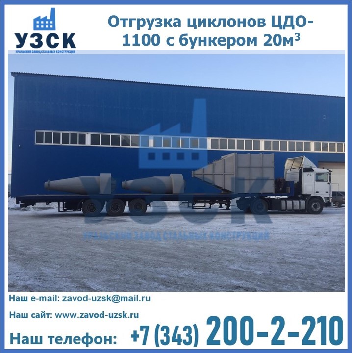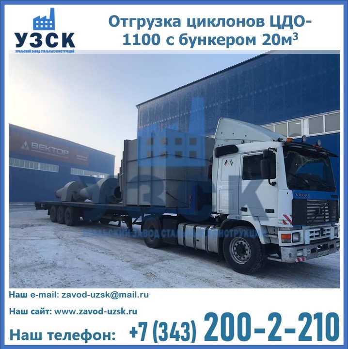 Циклоны ЦДО-1100 с бункером на 20 кубов были отгружены в декабре 2018 года в г. Новосибирск Сургут.