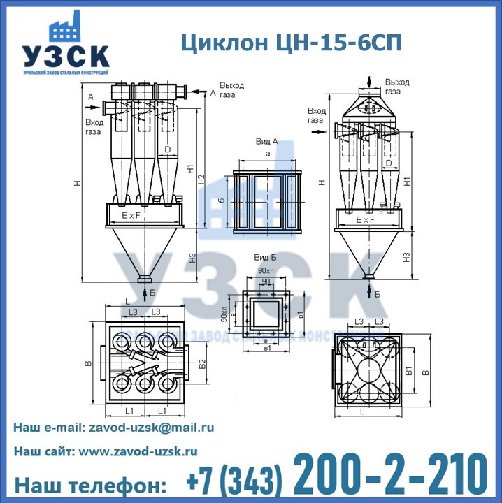 Завод «УЗСК» в Сургуте предлагает большой выбор циклонов ЦН-15-800×6СП и прочих устройств, полностью укомплектованных и готовых к эксплуатации. Мы гарантируем соответствие оборудования всем требованиям ГОСТ и ТУ, износостойкость и высокую производительность предлагаемого оборудования. Уральский Завод Стальных Конструкций изготавливает и продает надежное, эффективное и производительное оборудование, имеющее длительную гарантию и большой эксплуатационный ресурс. Если требуется изготовить циклон нестандартных размеров, то такой вариант выполнения заказа тоже предусмотрен, так как предприятие имеет собственные производственные площади и надежных поставщиков. На все поставляемое или производимое оборудование имеются чертежи и прочая техническая документация. Заказать и купить циклоны или прочее оборудование высокого качества и по доступной цене можно через наш сайт или по указанному в разделе «Контакты» телефону.