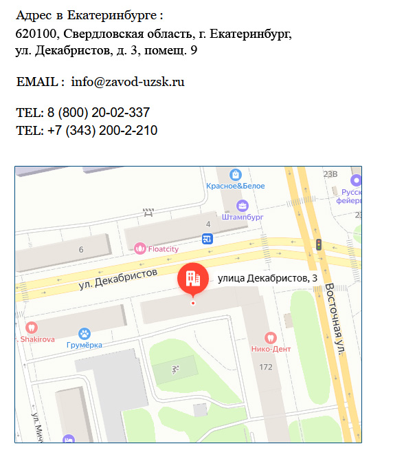 Наши контакты Информационно-сервисное представительствоАдрес: Сургут, Ханты-Мансийский АО, Сургут, ул. Бажова, 22E-Mail: surgut@zavod-uzsk.ruТелефон: Звонок по России бесплатный!Время работы:ПН — 09.00 — 20.00ВТ — 09.00 — 20.00СР — 09.00 — 20.00ЧТ — 09.00 — 20.00ПТ — 09.00 — 18.00СБ — выходнойВС — выходной