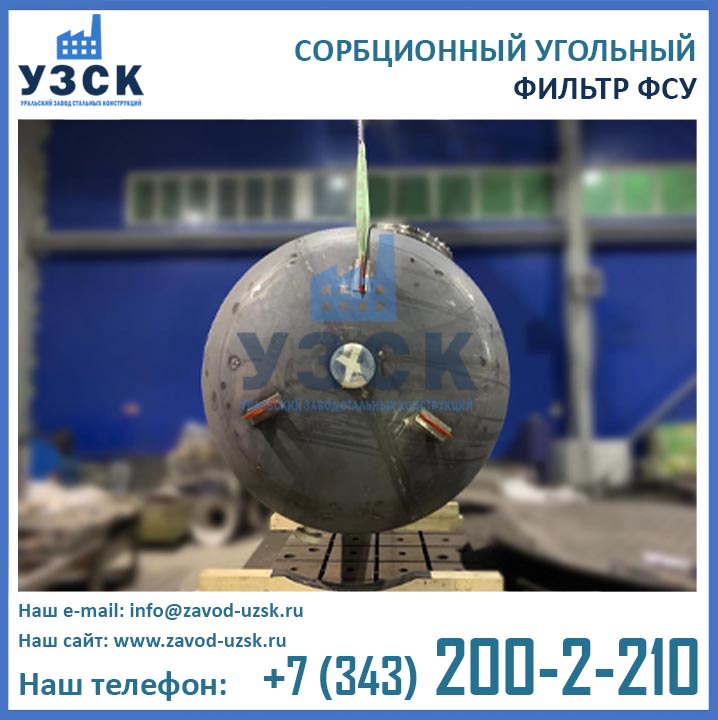 Качественную работу отопительных и промышленных котельных, линий по очистке конденсата и природных вод, электростанций обеспечивает фильтр сорбционный угольный типа ФСУ — вертикальный сосуд с одной камерой цилиндрической формы. Основное назначение оборудования состоит в глубокой очистке возвращаемого с производства конденсата от запахов, органических загрязнений и привкусов. Использование ФСУ в системах водоподготовки гарантирует очищение субстанции от масел, органических примесей, остатков нефтепродуктов до нормального значения — 0.52-1.0 мг/л. Купить в Сургуте угольные фильтры предлагает наш Уральский завод стальных конструкций. Мы выполняем производство ФСУ под нужды предприятия, возможно изготовление сорбционных фильтров ФСУ из нержавеющей стали включая корпус и внутренние устройства.